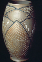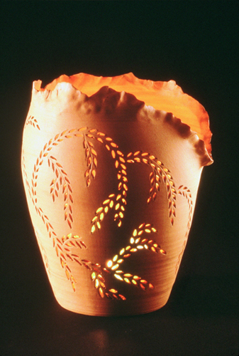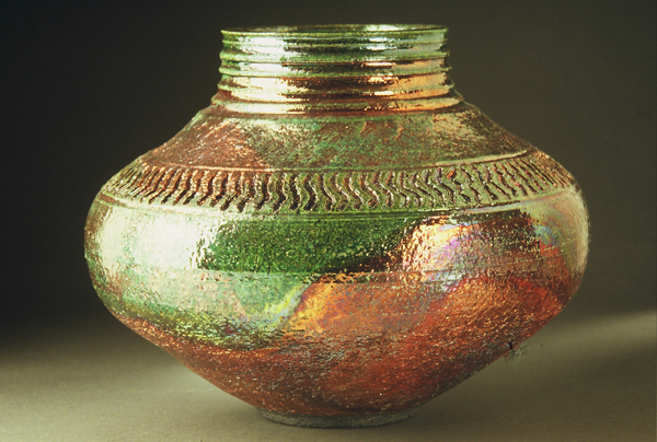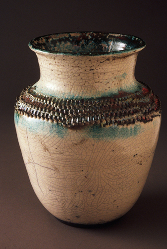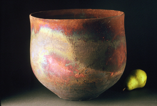 This is a version of the traditional Japanese raku pottery technique. Click on photos to enlarge.
